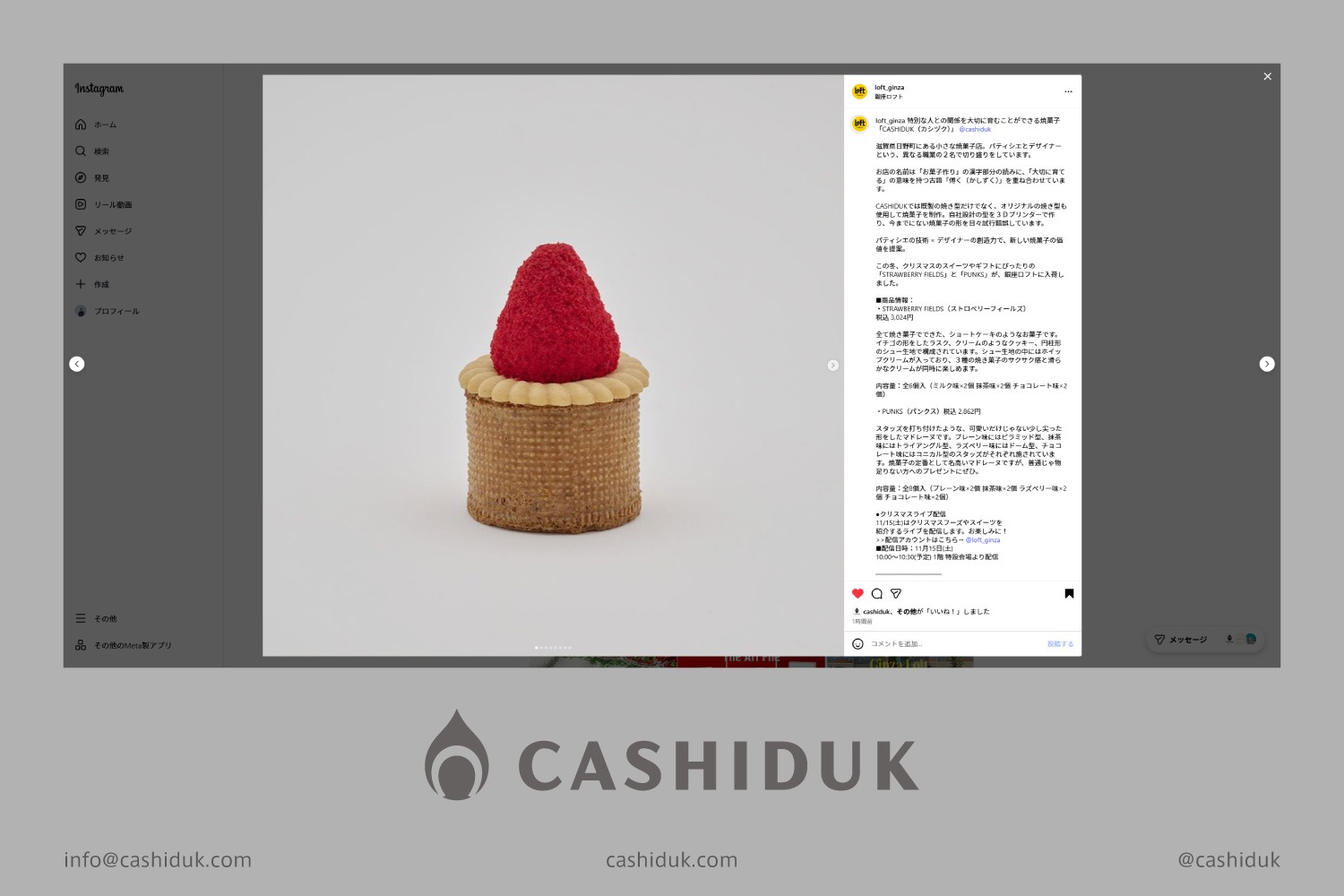 2025年11月1日(土)~12月25日(木)まで開催されている、銀座ロフトさんの「Ginza Loft CHRISTMAS 2025 Color Pop Holidays -心おどる、色ときめく季節-」にてCASHIDUKのSTRAWBERRY FIELDSとPUNKSが販売されています。