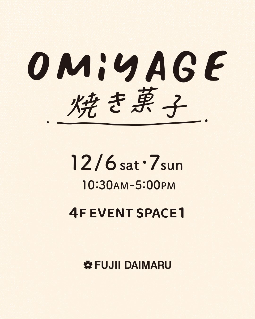 2025年12月6日(土)と7日(日)に藤井大丸さんで開催される「Omiyage焼き菓子」に出店します。