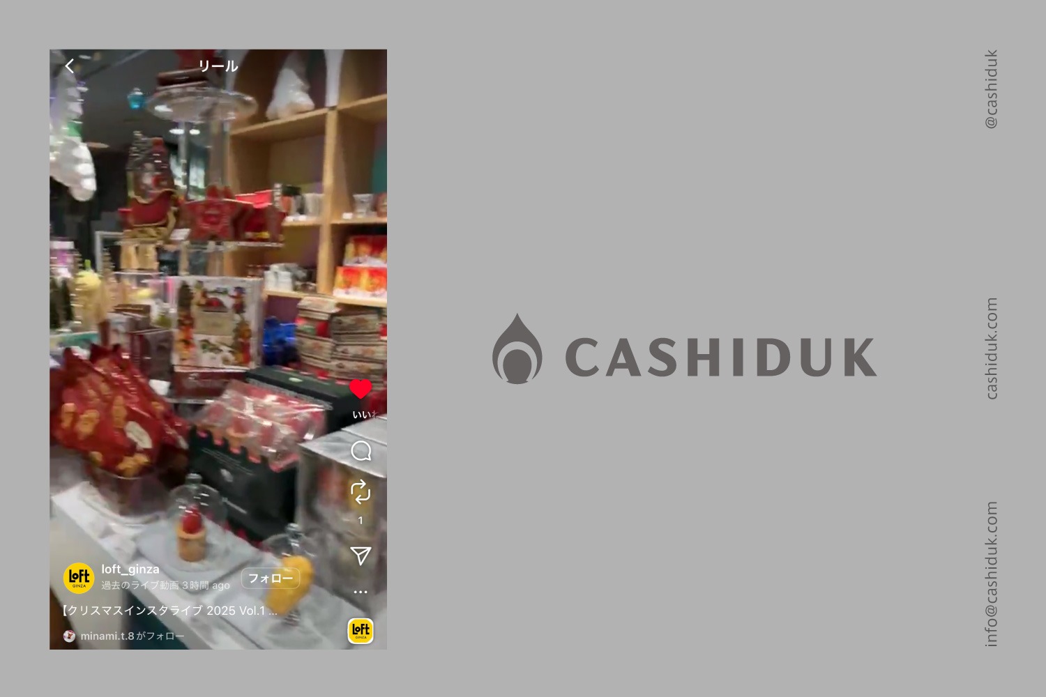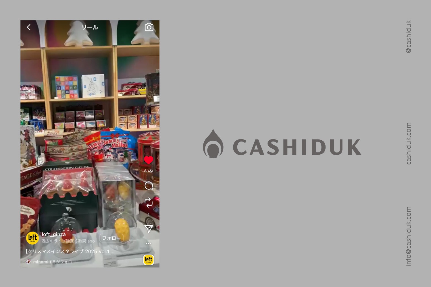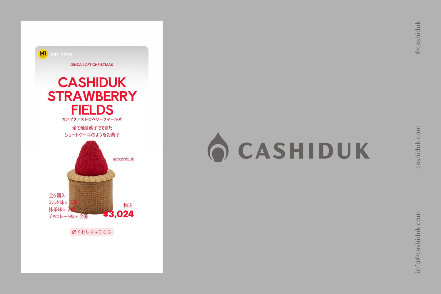 販売に伴い、銀座ロフトさんのInstagramでCASHIDUKのお菓子をご紹介いただきました。https://www.instagram.com/p/DQqwXl8kmbh/?img_index=1