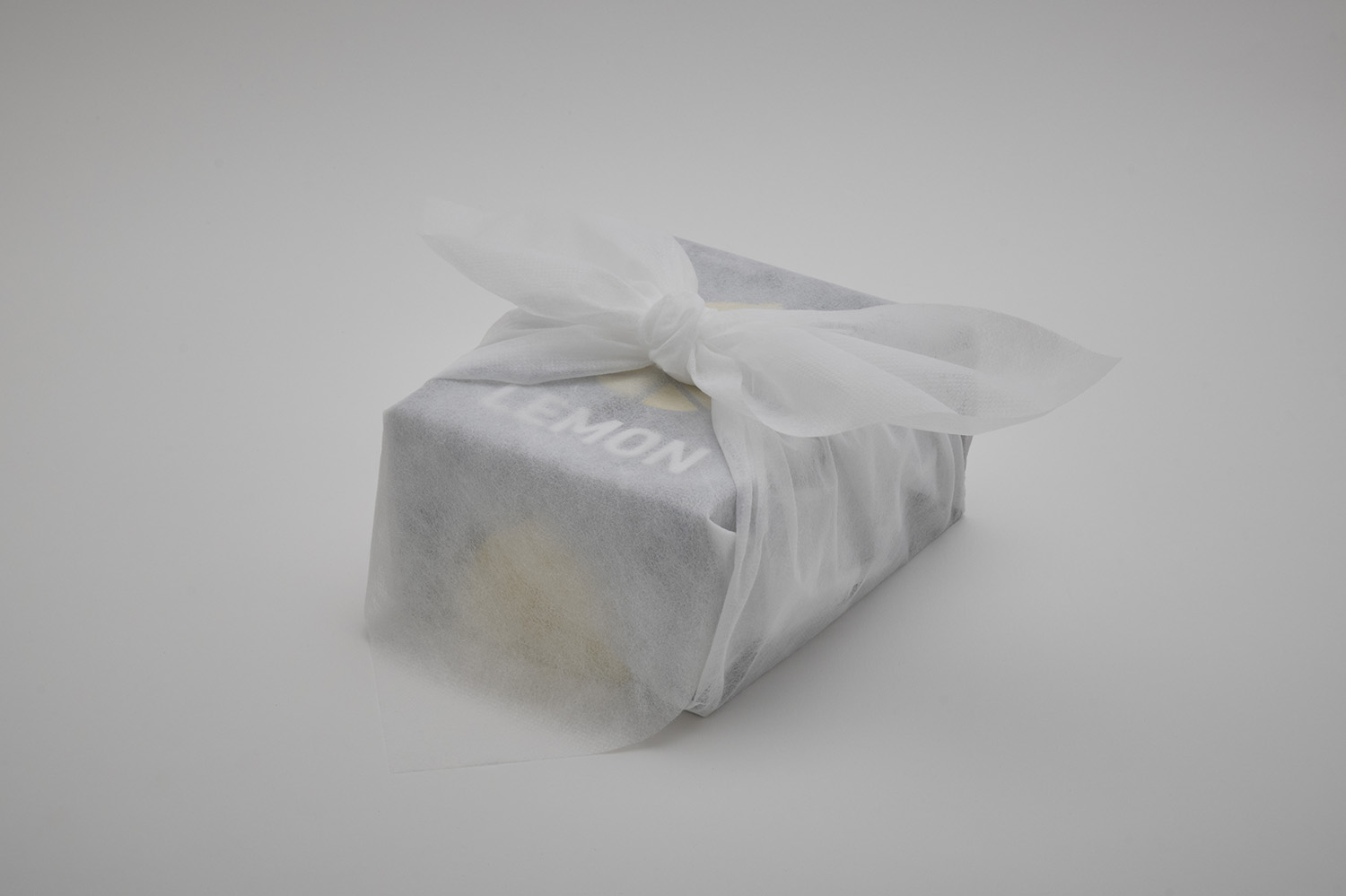 LEMONとPUNKSを不織布の風呂敷でラッピングした状態。